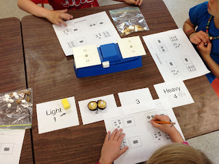 Olivia’s math class explored more about weight with balance scales. This week, they investigated how weighing more objects on one side usually makes the weight heavier. They were also able to put objects in order after weighing them. We used a small weight, marshmallows, gold fish crackers, pasta, and chocolate. The kids sure were hungry after each math class!